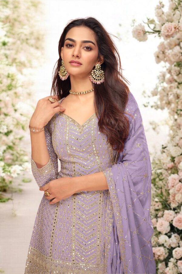 Lavender purple heavy sequins embroidered sharara suit