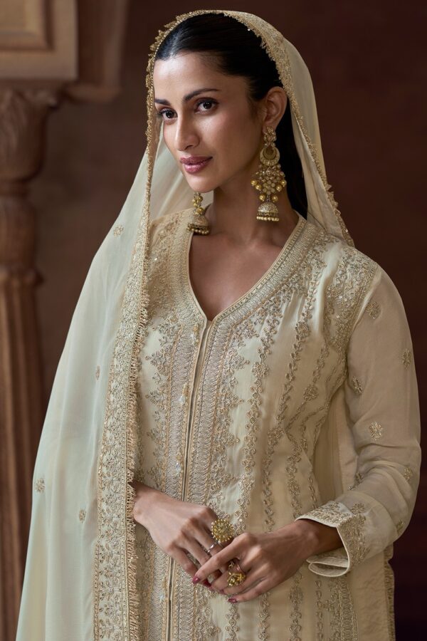 Ivory gold zari thread embroidered designer suit – Zedanya Sri Lanka