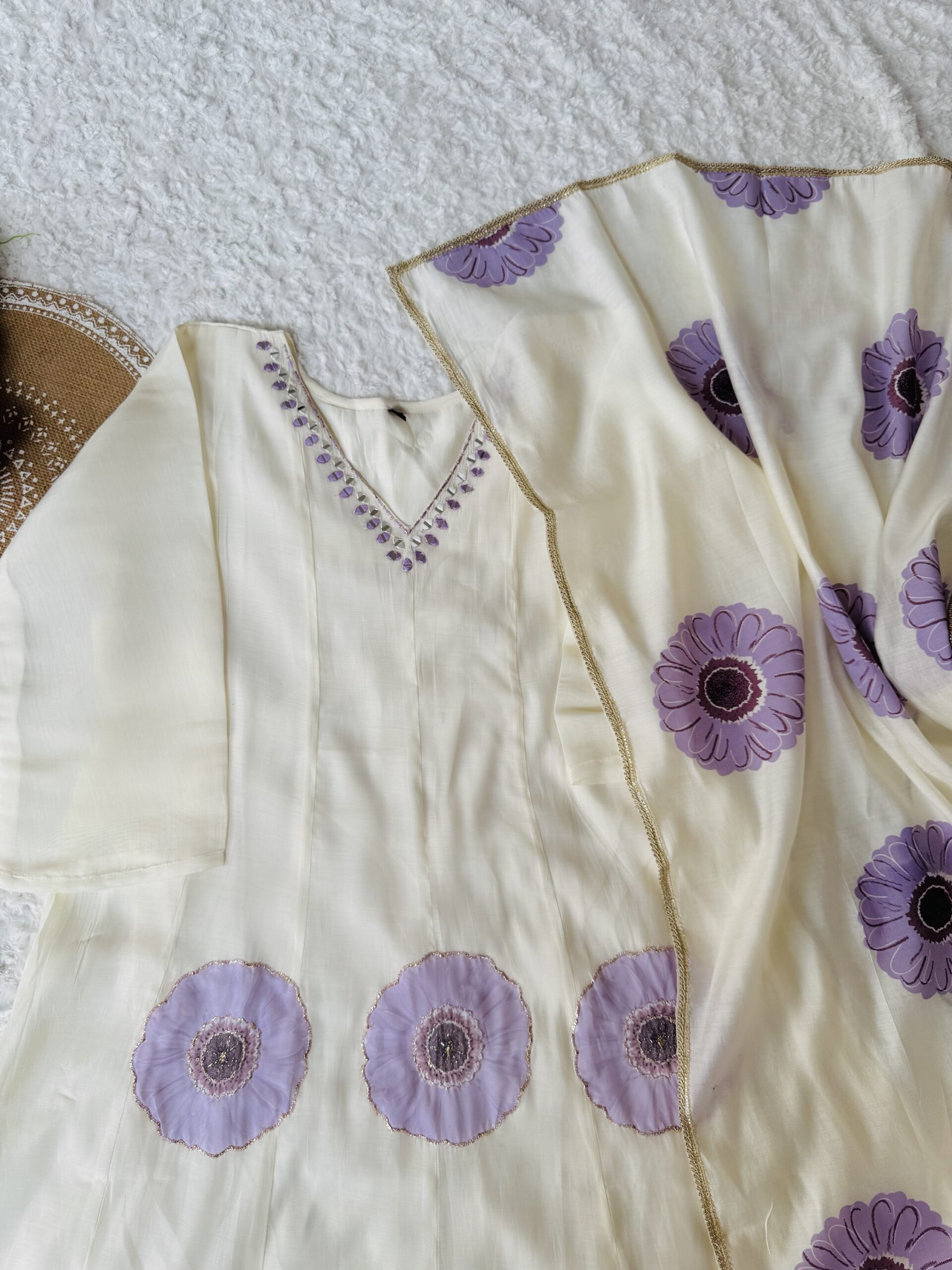 White yoke embroidered floral print duppatta shalwar suit by Zedanya