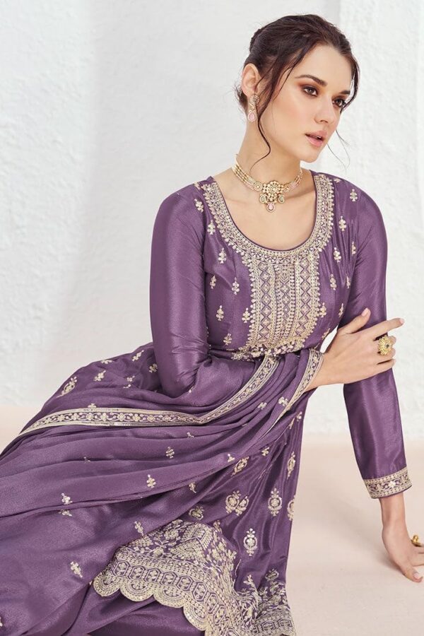 Purple Sequence Embroidery Anarkali Style Palazzo Suit by Zedanya