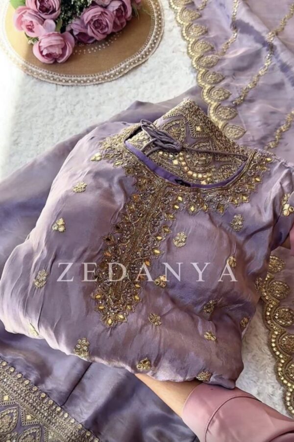 Purple shimmer silk gold zari embroidered sharara suit – Zedanya Sri Lanka